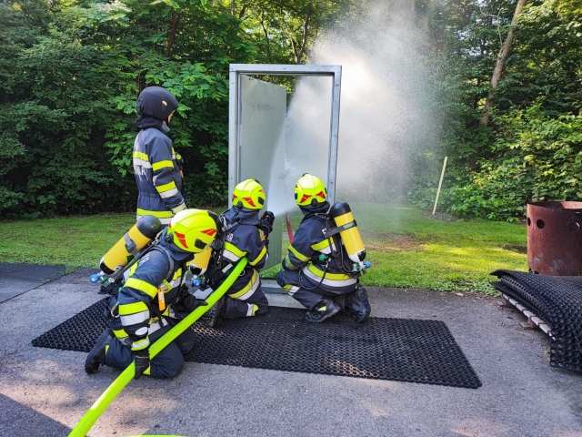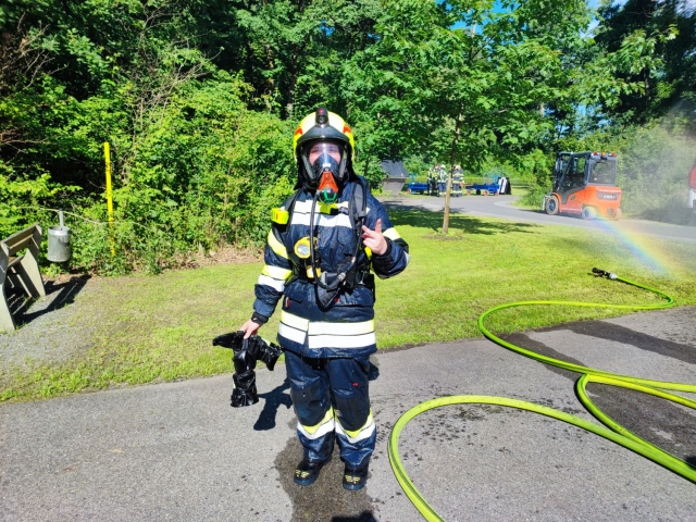 Am 15.06.2024 waren 3 Kameraden in Lebring zur Heißausbildung. Die Heißausbildung ist eine weitere Schulung für Gruppenkommandanten und Atemschutzgeräteträger die den Ernstfall trainiert. Dabei wird in einem Brandcontainer ein Vollbrand simuliert. Im Container wird bis auf 300 Grad eingeheizt und komplett vernebelt. Die Aufgabe besteht darin den Brand zu löschen und zwei Personen zu finden und zu retten.