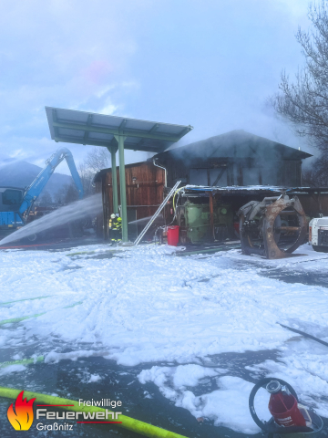 Am 26.01.2026 wurde die Freiwillige Feuerwehr Grassnitz um 15:56 Uhr gemeinsam mit der FF Aflenz und der FF Turnau zu einem Industrie/Werkstattbrand in Döllach alarmiert.